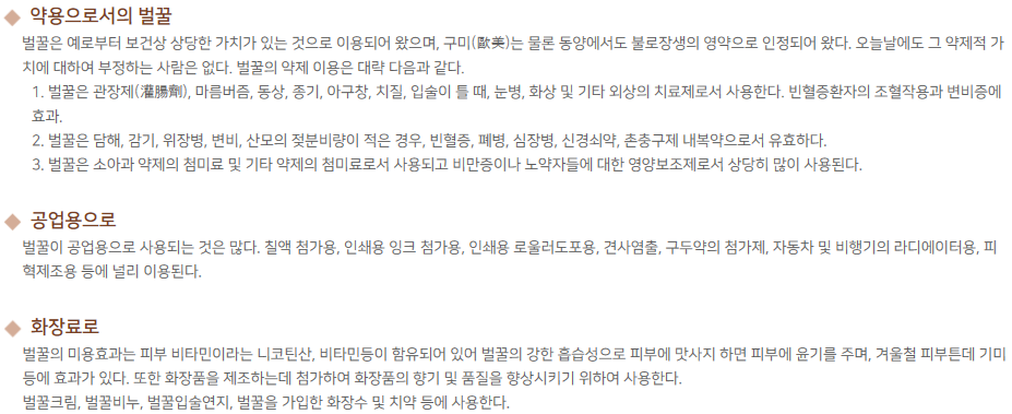 물론 최근에는 양봉업의 발달로 인공꿀이 대부분의 비중을 차지하고 있습니다.