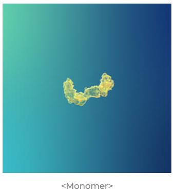 올리고머는 인간의 몸에 존재하는 베타-아밀로이드 단백질 중 일부가 응집되는 것을 나타냅니다.