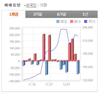 이에 외국인 투자자가 37만여 주, 기관이 4만여 주를 매도하였습니다.