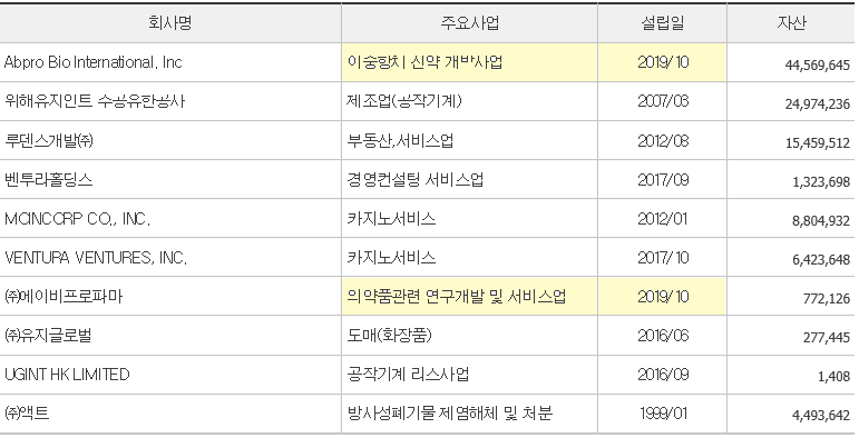 다만 미국 자회사인 에이비프로바이오 인터내셔널이 신약 개발사 에이비프로 코퍼레이션 최대 주주가 된 부분과