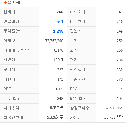 1년 동안 최저가 103원에 최고가 348원이니다.