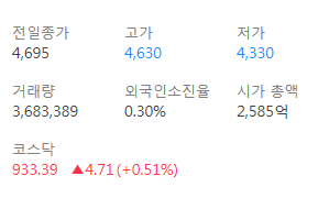 외국인의 보유 주식은 발행수에 비해 14만 주 정도니 비율로 보다면 0.3%가 채 되지 않습니다.