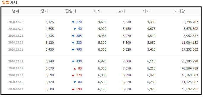 물론 요즘 변동이 심하긴 하지만 2020년 10월만 해도 1~2천에 원에 불과했던 주식이 7,500원 정도에 멈출 줄