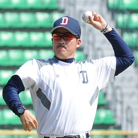 두산의 김인식 감독의 호출로 외야를 맡아 주전으로 큰 활약을 펼쳤습니다.