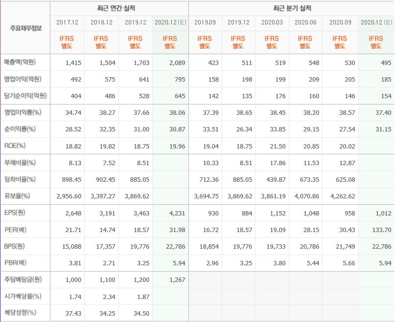 리노공업의 현금배당은 이번뿐 아니라 작년인 2020년에는 주당 1.200원을, 2018년에는 주당 1,100원을 현금배당
