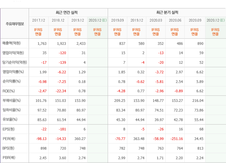 영업이익도 2018년도 -120억 원 적자였으나, 2019년에는 흑자를 기록하였습니다.