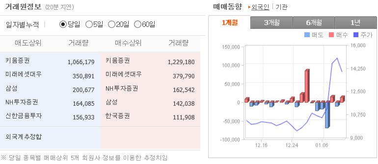 봉차트를 보면 몇일 전 최고가인 16,950원을