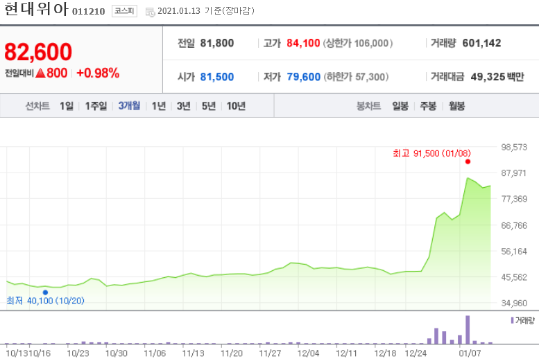 새해 부터 현대위아주가는 갑자기 50%가까이