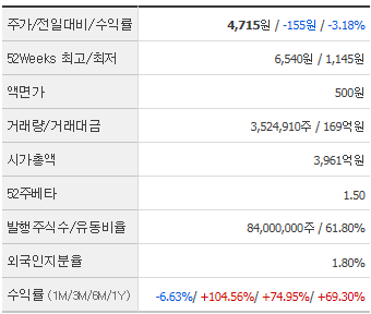 2018년도에 최고 주가는 10,100원까지 기록을 하였으나, 좋지 않은 주가모습이 보이네요