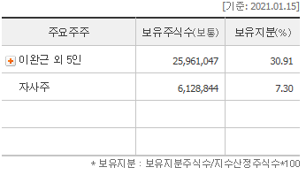 있습니다. 소액주주 보유 비율은 57%정도 됩니다.