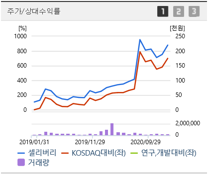 셀리버리주가는 작년에 이미 243% 올랐으며, 여러가지 신약후보물질에 집중한 결과가 아닐까 생각합니다.