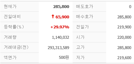 다들 아시겠지만 주식을 추가로 발행하여 자본을 늘리는 무상증자 소식도 상한가 작용에 보탬을 주었습니다.