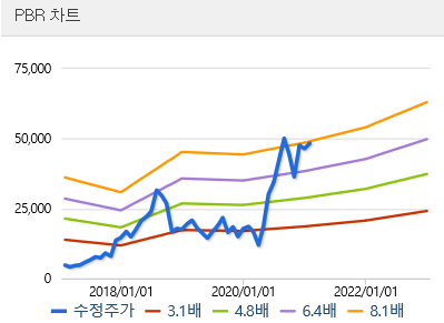 52주 최고가는 54,400이며, 최저가는 8,600원 입니다.