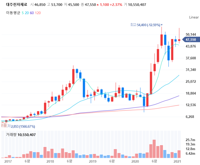 작년부터 전기차 수요가 증가하면서 탄력을 받지 않았나 싶습니다.