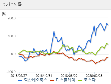 작년 11월 덕산네오룩스는 갤럭시 노트20과 아이폰 12 시리즈 출시로 성장세를 이어갔습니다.