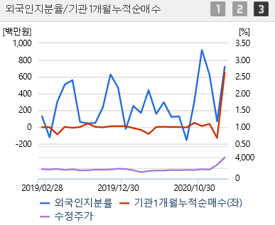 외국인의 대량매수와 개인들의 많은 매도를 본다면 유의깊게 지켜볼 필요는 있겠습니다.