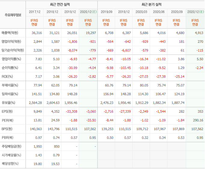 영업이익, 당기순이익, 순이익률등 군산공자의 가동중단으로 인한 적자상태를 볼 수 있습니다.