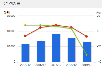 2017년부터 매출액은 서서히 줄어들고 있습니다.