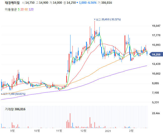 사실 태경케미컬은 특징주로 콜드체인 유통망으로 주목받으면서 주가가 강세를 보였습니다.
