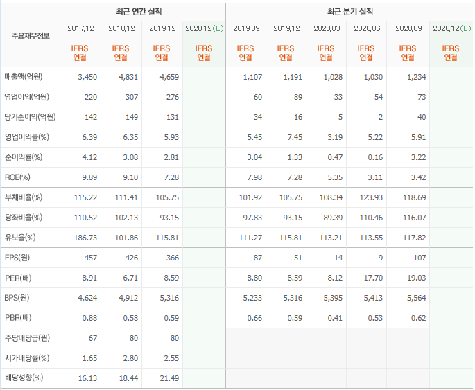 영업이익, 당기순이익등 모두 흑자상태로 재무 상태가 아주 괜찮은 기업입니다.
