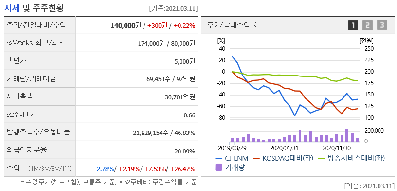 CJ enm주가