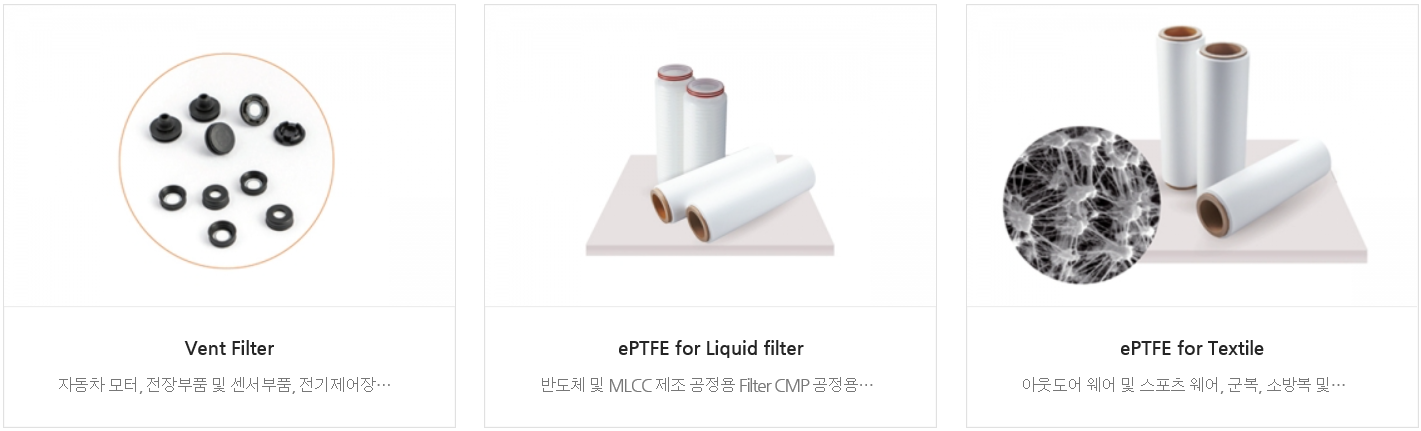 ePTFE(맴브레인)이라는 수소차의 핵심 부품을 삼성 SDI에 납품을 하고 있습니다.