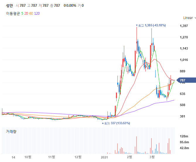 몇일전인 3월 22일 성안은 거래 정지가 되었습니다.