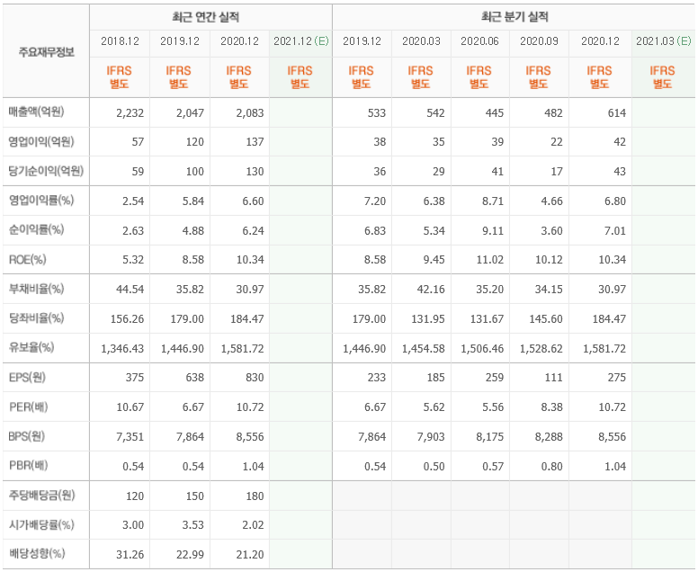 매출액, 영업이익, 순이익, 영업이익률이 비교적 안정적 입니다.