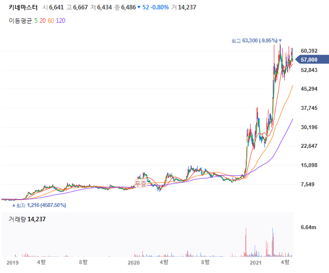 2002년 9월에 설립된 키네마스터의 주가가 계속 상승중입니다.