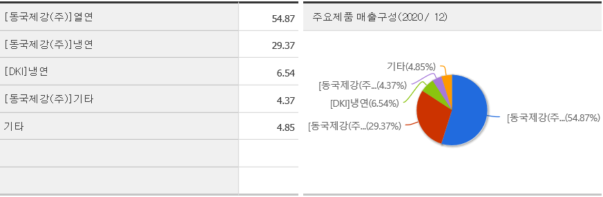 이 기업의 주 매출은 열연이나 냉연이 주를 이루고 있습니다.