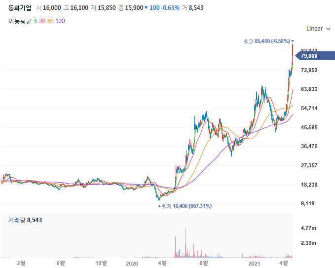 무려 8배가까이 상승을 했으니 엄청난다고 밖에는 할말이 없습니다.