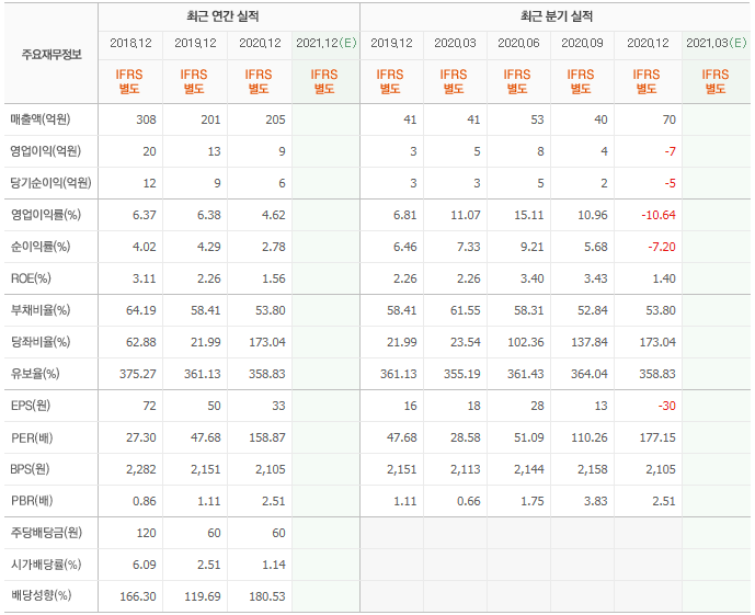 영업이익과 당기순이익은 매년 줄어들고 있으나 적자는 아닙니다.