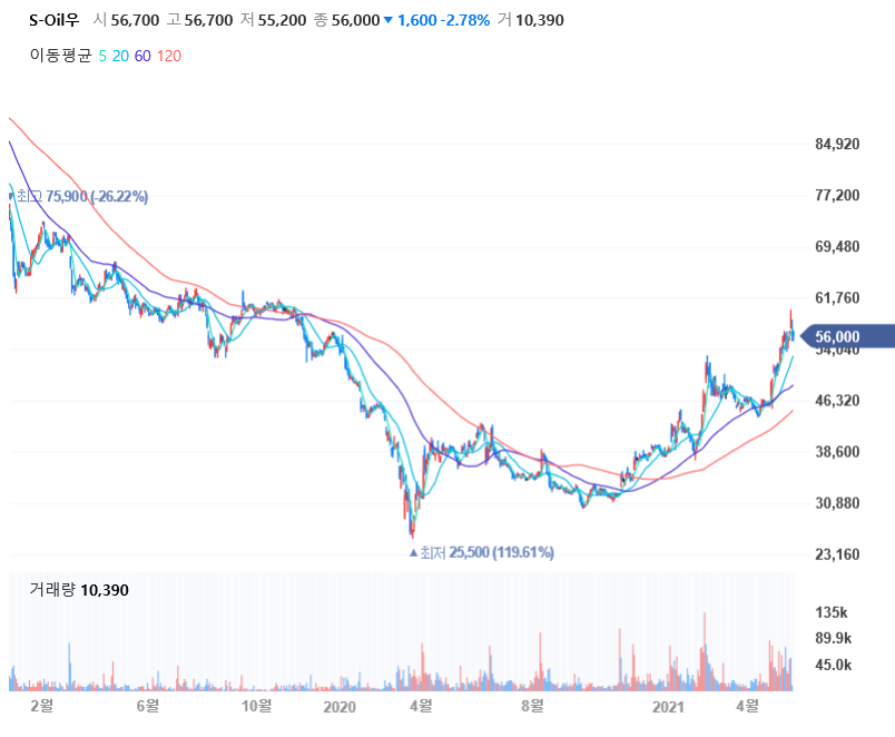 거기다 윤활기유 제품과 석유화학제품의 가격 상승과 수요는 주가를 끌어 올려 주기에 충분한 조건이였습니다.