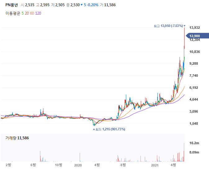 pn풍년은 그 역사 아주 긴 업체로 1954년 세광알미늄 공업사로 시작을 하여, 이듬해 코스닥 시장에 상장을 하였습니다. 주 사업은 알루미늄과 스테인리스 기류 제조와 판매를 하고 있으며 풍년 압력밥솥은 집집마다 없는 사람이 없을 정도였죠!