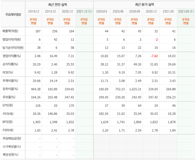 전반적인 재무상태는 아주 좋은 수준입니다. 시가총액은 적어도 탄탄한 기업이네요. 과거 좋지 않은 실적으로 고전을 면치 못하다가 2012년 안출수 테마주로 묶여 증권시장의 주목을 받았습니다.