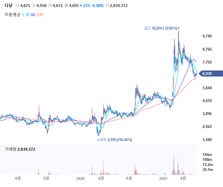 다날주가