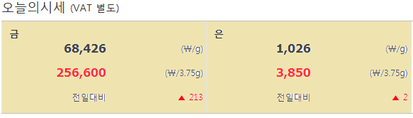 | 금 도매가 | 68,426 | 256,600 |