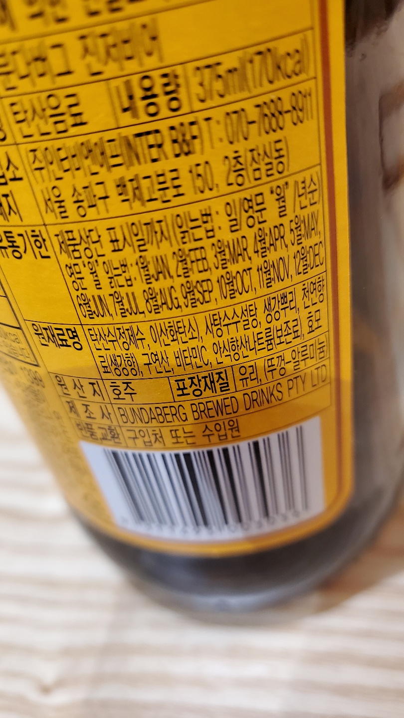 비타민C와 생강 뿌리, 생강향(천연향료), 사탕수수, 효모, 탄산수가 들어 있네요! 생강차가 감기에도 많이 먹지만 속을 따뜻하게 해 주어 천연 소화제로도 많이 먹긴 하죠!