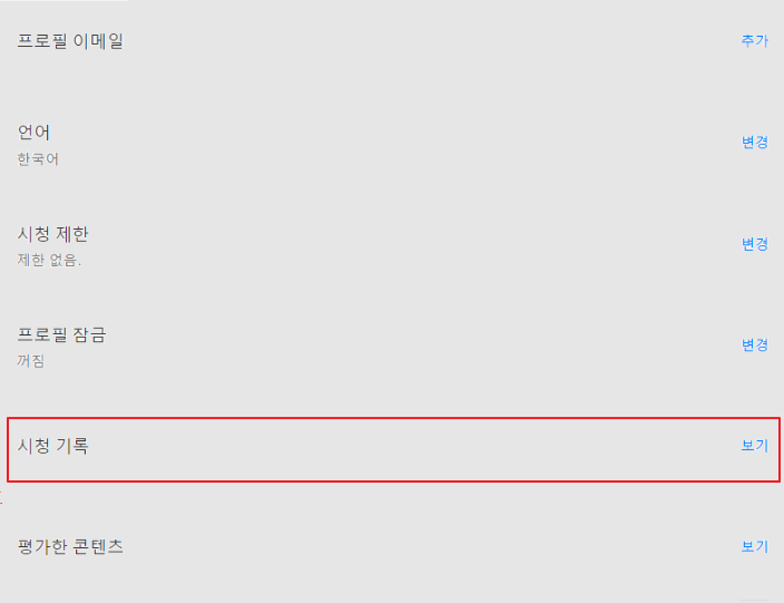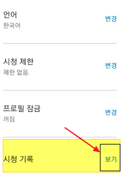 ▼시청기록의 우측 보기에 클릭해 보면 나의 시청 목록이 쭉 나오게 됩니다.