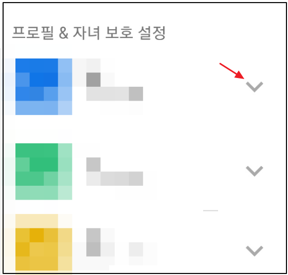 ▼프로필 자녀보호 설정으로 삭제하고자 하는 프로필 우측 화살표를 눌러 줍니다.