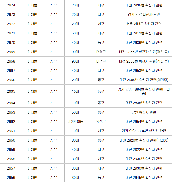 7월 11일 기준으로 코로나 확진자 25명이나 나왔습니다. 수도권이 아닌 지방에서 이 정도면 많이 나온 편입니다.