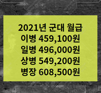 2021년 군대 월급은 이등병이 459,100원, 일병 496,000원, 상병 549,200원, 병장이 608,500원입니다. 정말 많이 올랐다고 하나 출산율이 저조한 나라에서 어찌 보면 진작에 추진했어야 하는 제도가 아닐까 생각합니다.
