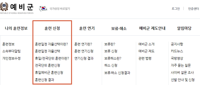 휴일이나 내가 원하는 날짜에 훈련을 받고 싶다면 예비군 홈페이지에 접속하시어 로그인하셔야 합니다. 훈련 일정을 보면 자율선택에서 원하는 훈련 날짜를 선택할 수 있습니다.