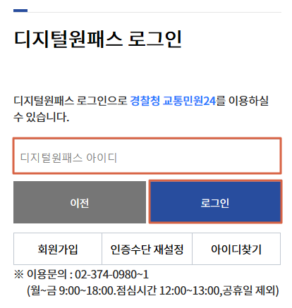 디지털원 패스를 통하여 인증서 등록을 해 놓을 경우 아래와 같이 디지털원패스 로그인 누르면 스마트폰으로 통하여 인증을 하면 바로 로그인된다. 로그인 후 교통범칙금이나 과태료, 운전면허 조사 예약, 최근 무인단속내용 등 항목을 통하여 내가 조회하고 싶은 곳을 눌러 주면 됩니다.