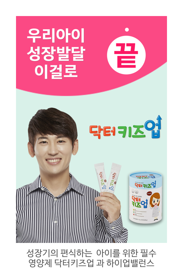 비타민D, 칼슘, 아연, cbp, 콜라겐을 함유한, 닥터키즈업 성분에 망간, 비타민A와D, 마그네슘 12종 혼합유산균까지 포함된, 하이업밸런스 가 그 제품이다.