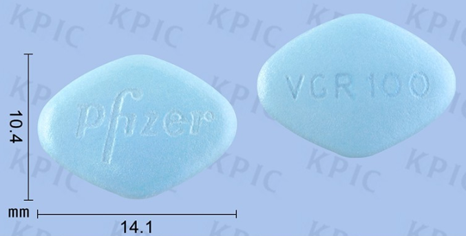 화이자에서 출시한 전문의약품으로 파란색 마름모형 필름코팅정이다. 외관은 영문의 '화이자' 이니셜과 VGR100란 식별표기가 특징이다. 의사의 처방이 필요한 약이기에 임의로 인터넷 구매가 다른 사람으로부터 얻어 복용하지 않아야 하며 18세 이하는 복용을 권장하지 않는 약물이다.