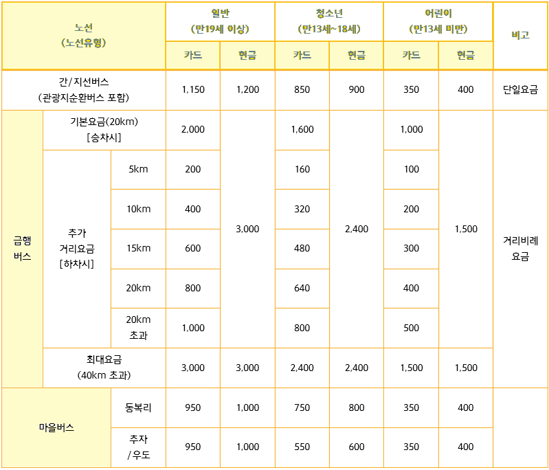 | 구분 | 버스종류 | 승객유형 | 현금 |