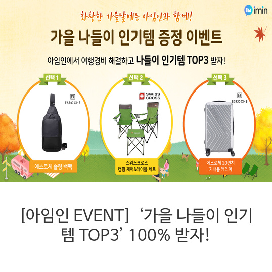 [아임인 EVENT] ‘가을 나들이 인기 템 TOP3’ 100% 받자!