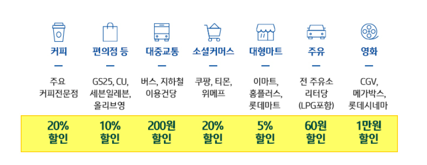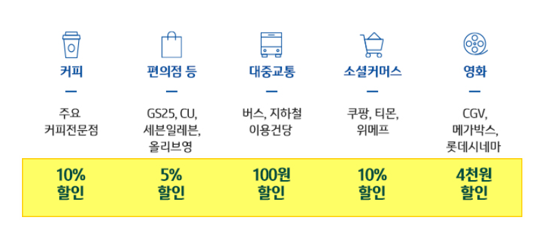 | 편의점(GS25, 올리브영, 세븐일레븐) | 5% 할인 |
