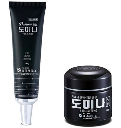 과거 유럽이나 일본에선 히드로퀴논 성분이 발암물질로 여겨 사용금지를 한적이 있었다. 물론 히드로퀴논 성분을 화장품에 사용하지 못하는 이유는 바로 독성 때문인데 자칫 장기간 사용으로 조직 갈변증을 유발할 수 있기 때문이다. 그래서 도미나 크림도 일반의약품으로 지정되어 있다.